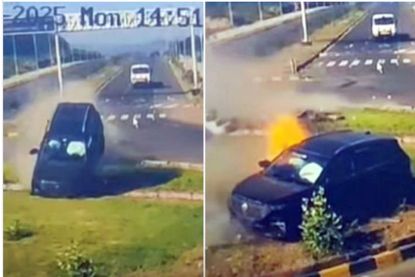 ẤN ĐỘ - Mới đây, những hình ảnh lan truyền trên mạng cho thấy chiếc MG Hector chạy quá tốc độ, lao thẳng qua một vòng xuyến và sau đó bốc cháy dữ dội. May mắn, tất cả ngư...