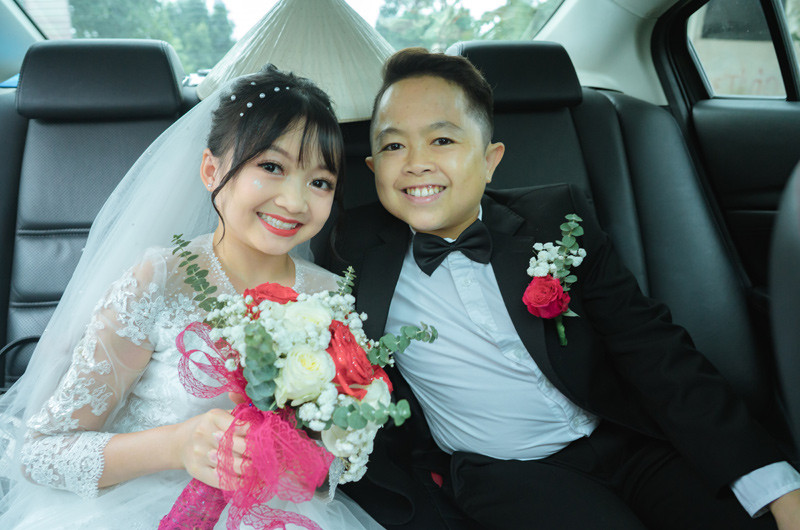 Dự kiến làm 30 mâm cỗ nhưng lượng khách thực tế đến tham dự lại đông gấp đôi, cặp đôi tí hon đã có kỷ niệm khó quên trong ngày cưới.