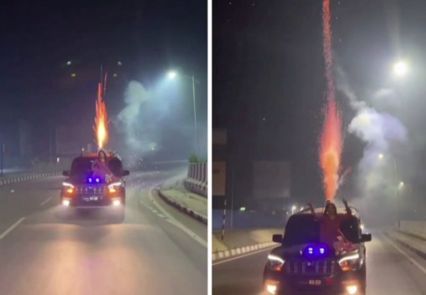 Trong đoạn video, một chiếc xe SUV di chuyển trên đường công cộng với cảnh người phụ nữ ngồi trên nắp capo và pháo hóa được bắn ngay phía sau, từ nóc chiếc xe. Toàn bộ sự việc được một xe khác đi phía trước quay lại. Thời điểm này, nhiều phương tiện khác vẫn lưu thông xung quanh khiến người xem không khỏi bức xúc vì nguy cơ tai nạn cao.