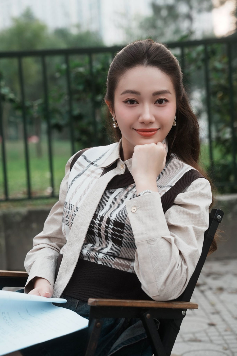 Kiều My ở hậu trường phim.