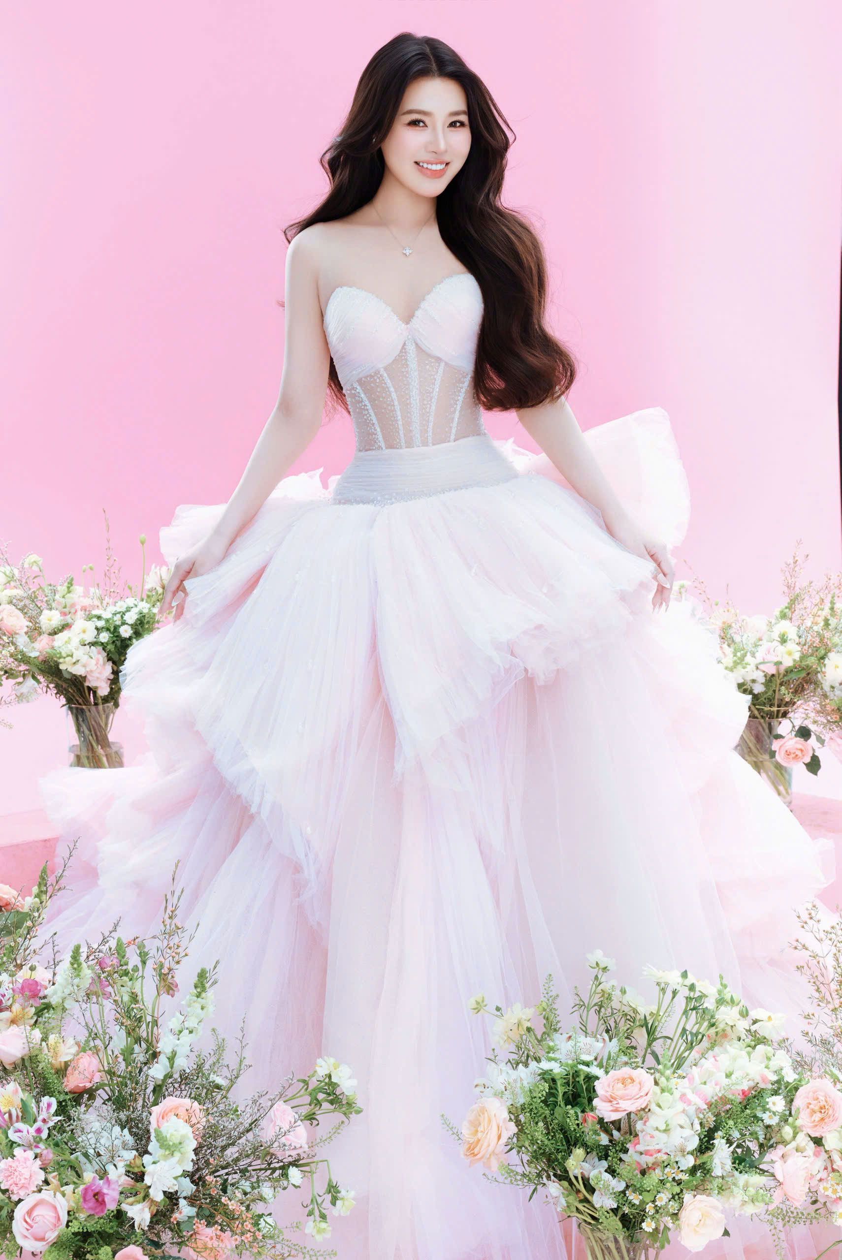 Mới đây, Đỗ Hà Trang giới thiệu bộ ảnh thời trang mới mang gam màu pastel ngọt ngào. Trong loạt hình, người đẹp diện những thiết kế váy trắng bồng bềnh, tạo hình giữa không gian phủ đầy hoa tươi với tông hồng phấn, xanh baby chủ đạo. Tổng thể bộ ảnh gợi cảm giác mềm mại, bay bổng, như hình ảnh “nàng thơ” bước ra từ khu vườn cổ tích.
