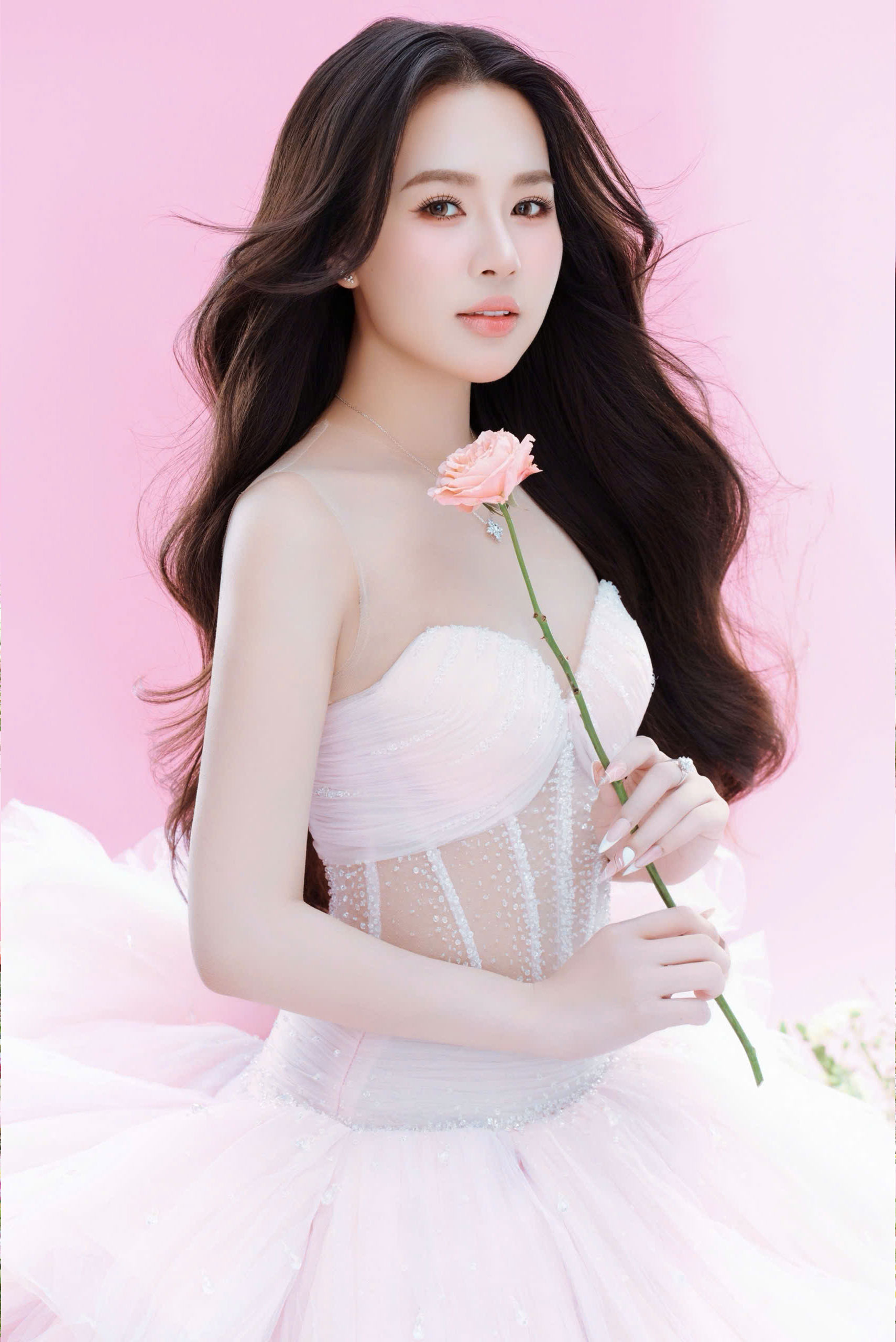 Người đẹp lựa chọn lối trang điểm trong veo, nhấn nhẹ vào đôi mắt và làn môi hồng tự nhiên, tôn lên gương mặt thanh tú. Mái tóc dài uốn nhẹ, buông xõa giúp tăng vẻ dịu dàng, nữ tính. Bộ ảnh tiếp tục thể hiện sự nhất quán trong phong cách mà cô theo đuổi - thanh lịch, tinh tế nhưng vẫn có dấu ấn riêng.