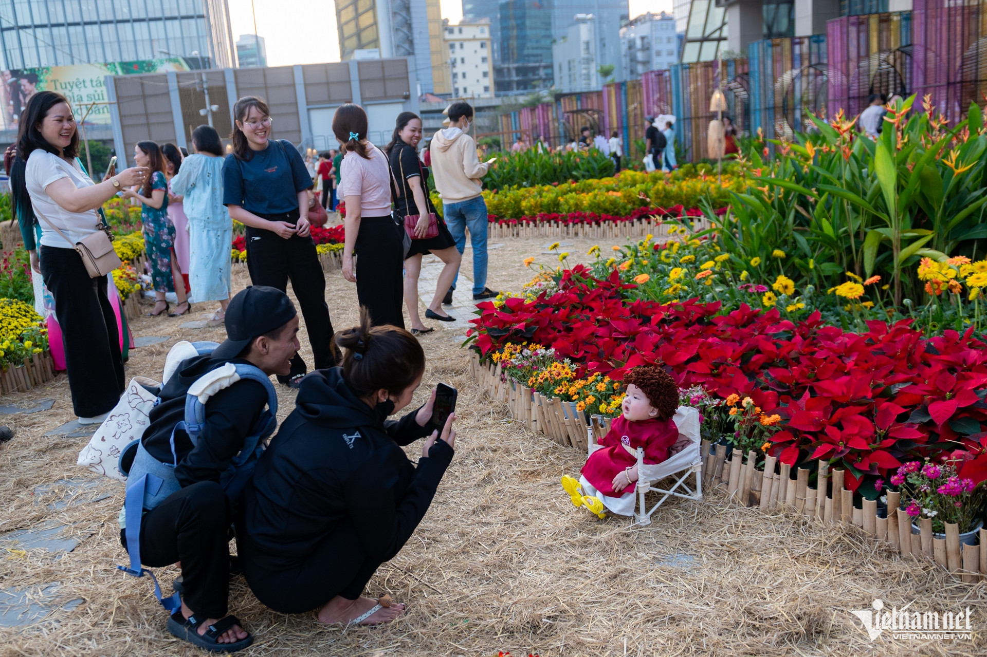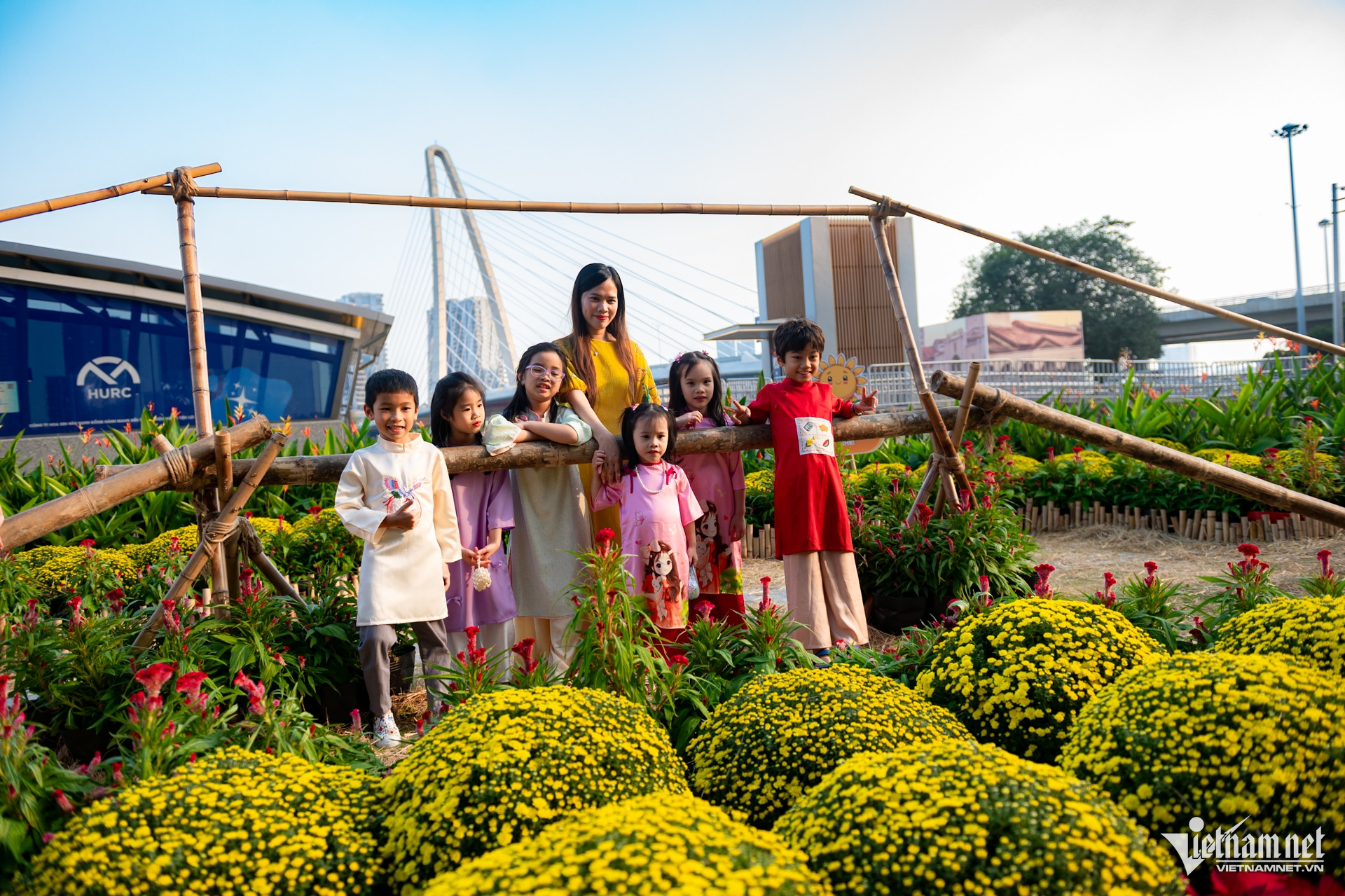 Vườn hoa cạnh ga ngầm Ba Son đang thu hút đông đảo người dân và du khách cuối tuần đến vui chơi, chụp ảnh, tận hưởng không khí Tết ở TPHCM.