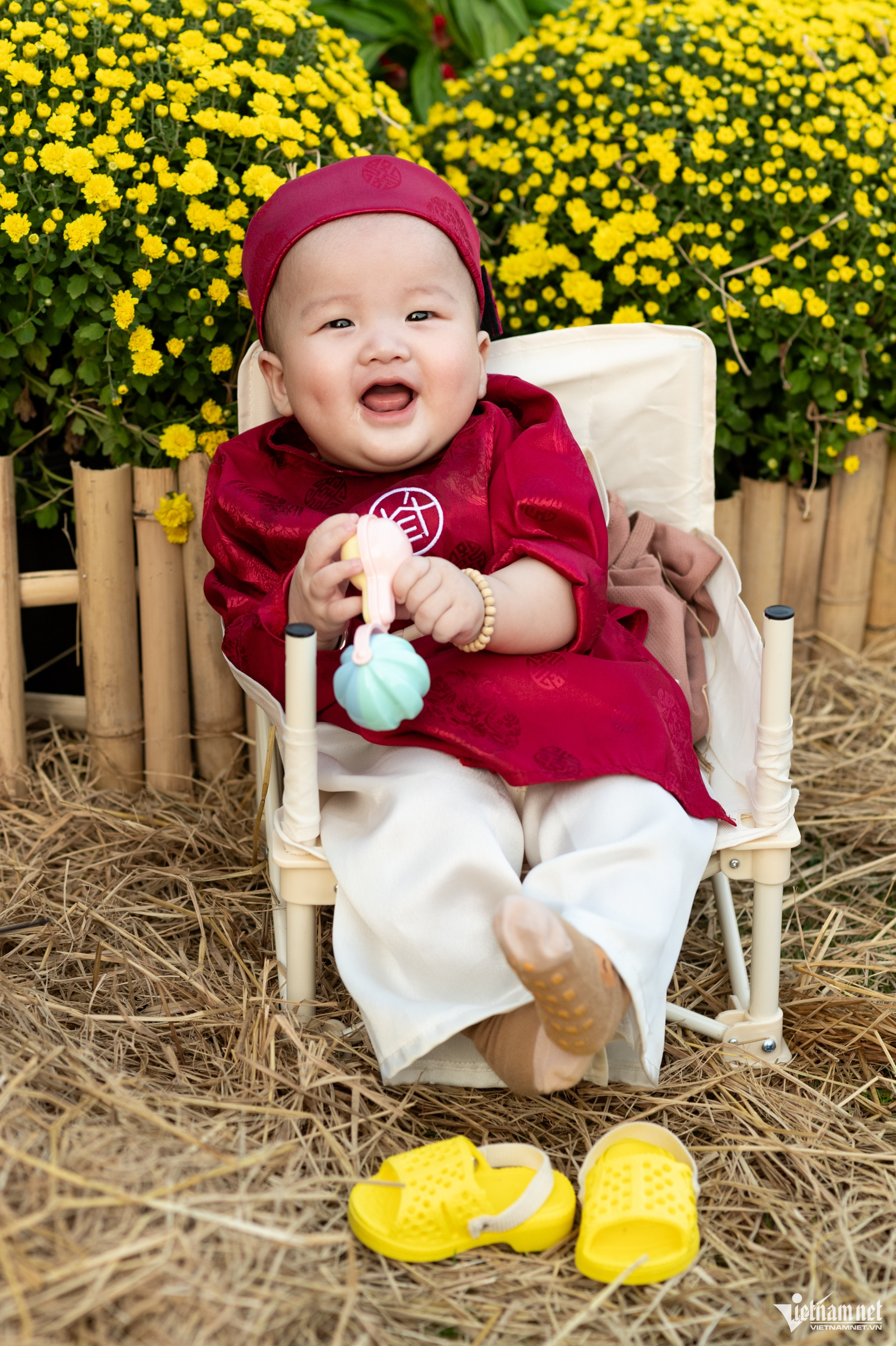 Hình ảnh em bé trong bộ áo dài nhỏ xinh, ngoan ngoãn hợp tác cùng ba mẹ chụp hình khiến nhiều người xung quanh thích thú