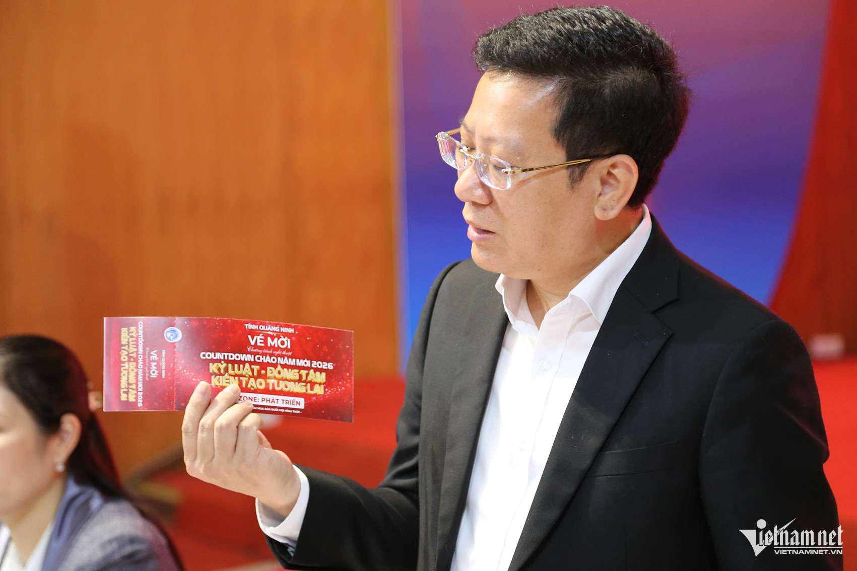 Lãnh đạo Sở Văn hóa Thể thao và Du lịch tỉnh Quảng Ninh công bố vé tham dự chương trình nghệ thuật. Ảnh: Phạm Công