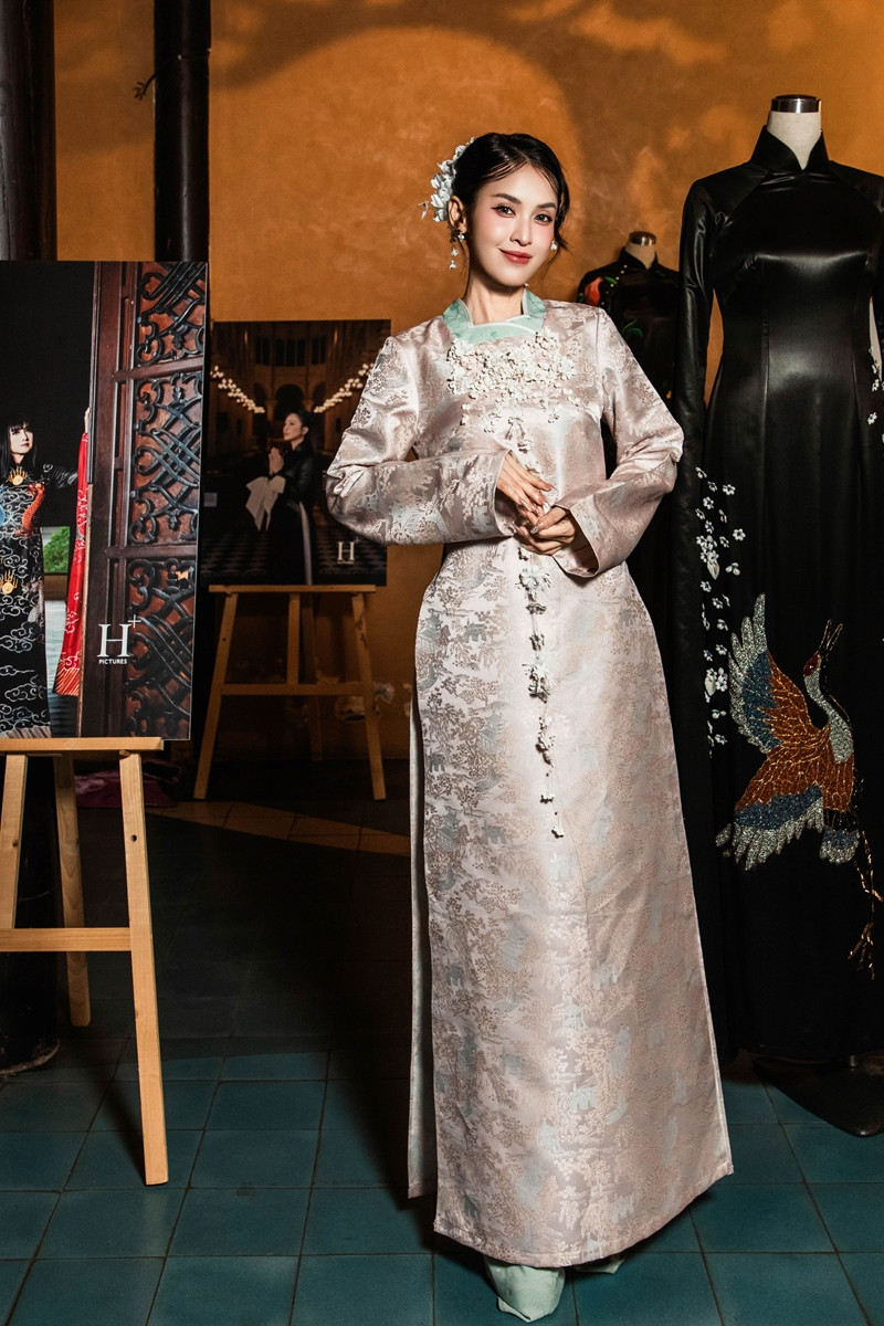 Hình tượng chim công khổng tước mang ý nghĩa biểu trưng cho vẻ đẹp quyến rũ, huyền bí, thịnh vượng, đồng thời thể hiện khát vọng làm mới áo dài Việt trong dòng chảy thời trang hiện đại. Hoa hậu Đại dương Việt Nam 2025 Nguyễn Thanh Thảo đảm nhiệm vai trò kết màn của BST.