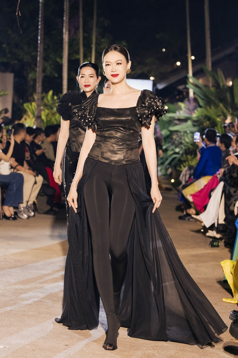 NSND Trịnh Kim Chi xuất hiện ở vai trò vedette ở bộ sưu tập mở màn. Tiếp nối là bộ sưu tập thực hiện trên chất liệu mặc nưa, khai thác phom dáng lấy cảm hứng từ áo bà ba và áo dài, tái hiện vẻ đẹp phụ nữ Việt dưới góc nhìn tinh tế và hiện đại.