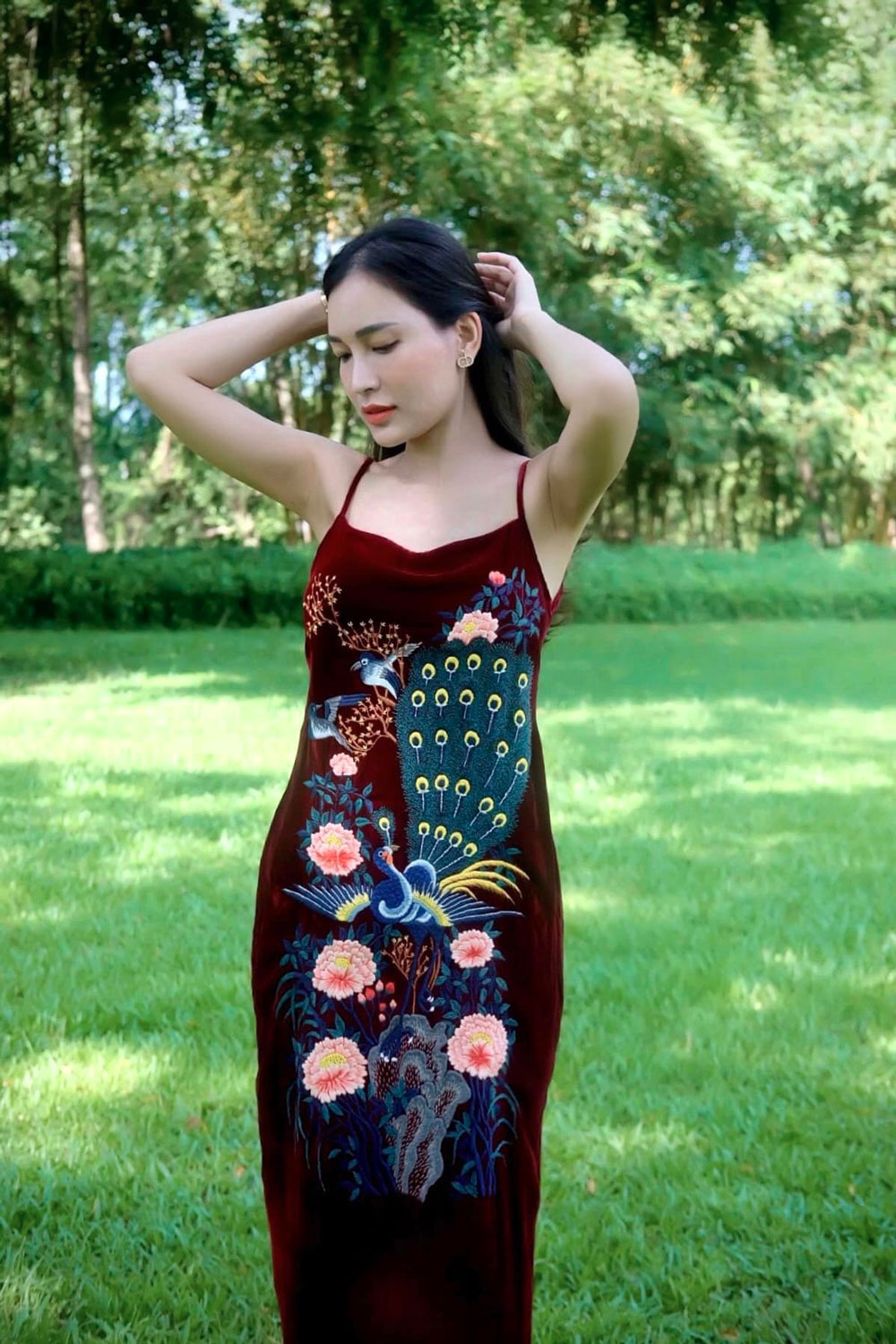 Nữ BTV sở hữu sắc vóc như người mẫu và đặc biệt thích các thiết kế nhung thêu truyền thống.