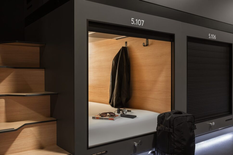 Mỗi khoang dài khoảng 2,2m, rộng 1m, đủ chỗ cho một người nằm thoải mái. Bên trong được trang bị móc treo, ổ sạc và gương, nhưng không có tivi - đúng với phương châm của khách sạn: “Ở đây là để ngủ, không phải để giải trí".
