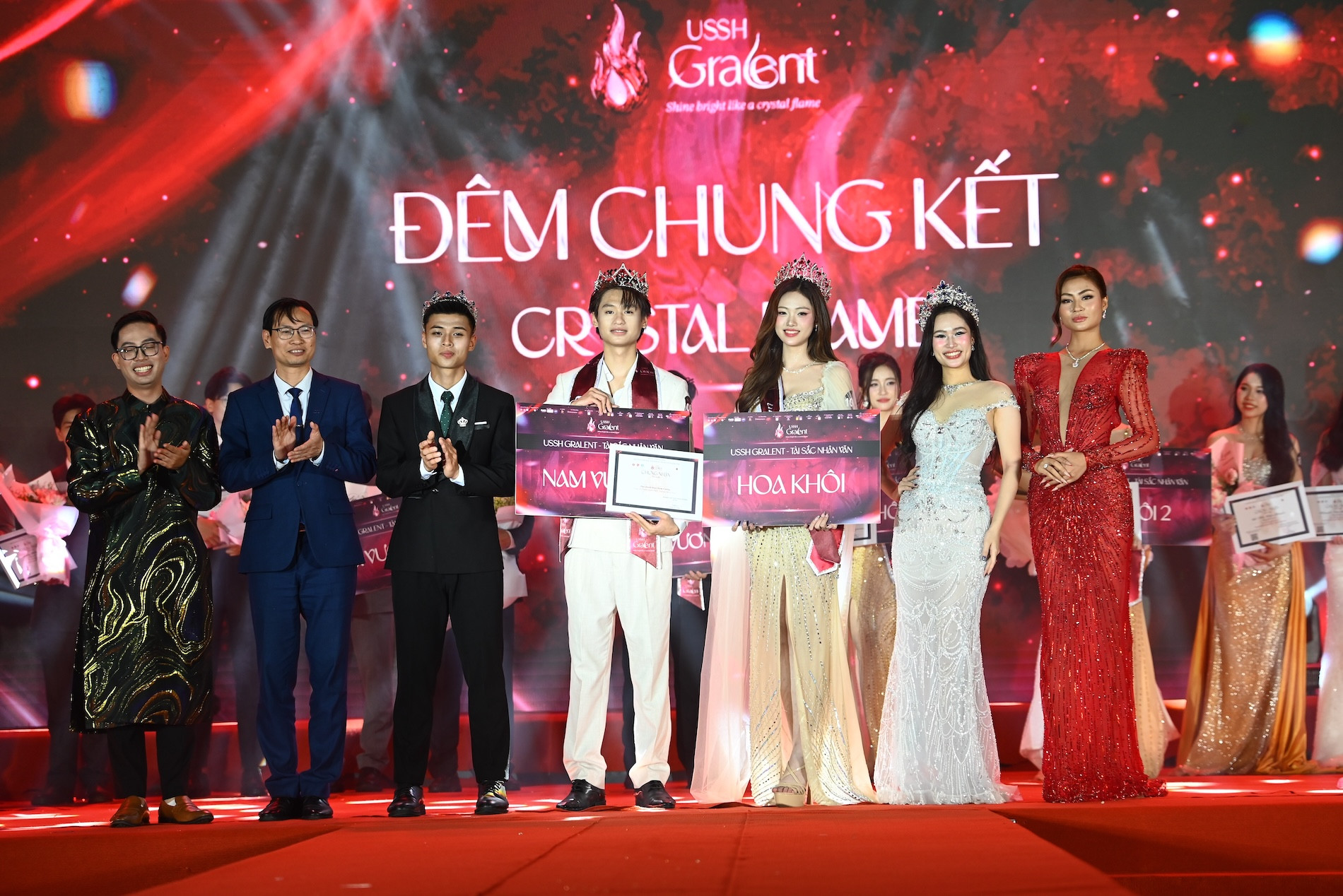 Quyên đăng quang cuộc thi Hoa khôi Tài sắc Nhân văn. Ảnh: NVCC