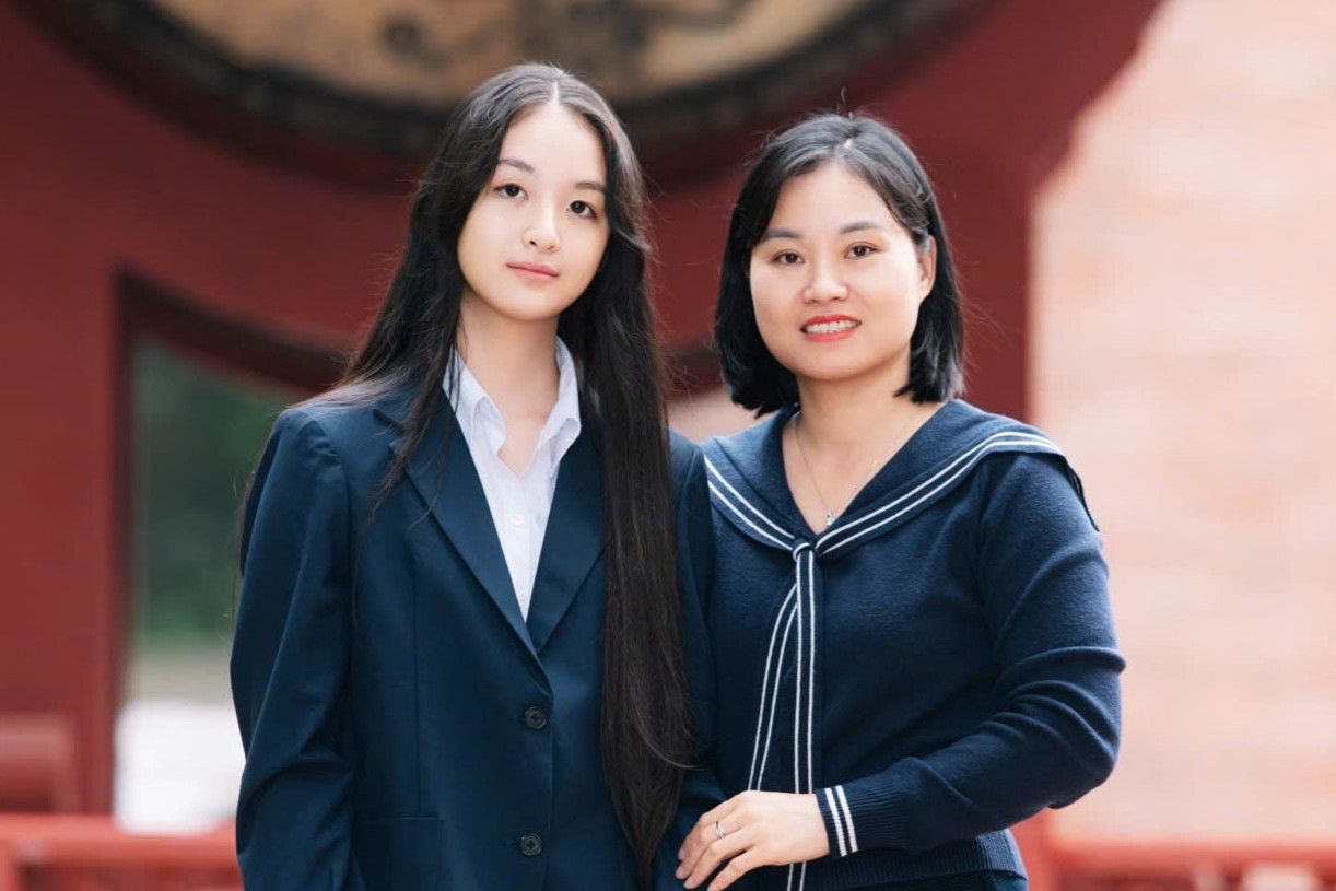 Nữ sinh Đỗ Lan Viên và mẹ. Ảnh: NVCC
