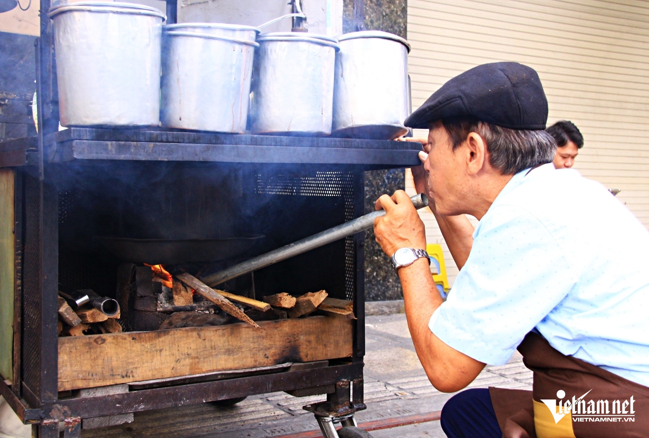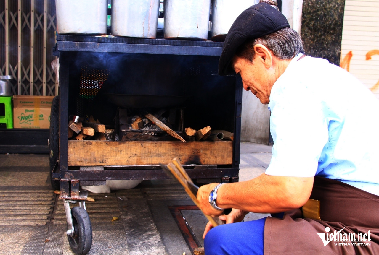 Giữ nghề gia truyền có từ thời của mẹ, ông Chí chẻ củi, nhóm bếp trên vỉa hè TPHCM để chế biến, bán món cà phê độc đáo, có hương vị thơm ngon.