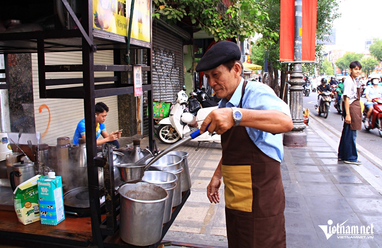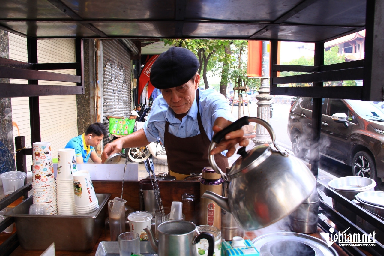 Ông Chí bán thức uống này trên những chiếc xe cà phê lưu động, thu hút khách bởi ánh lửa đỏ, mùi khói bếp và hương cà phê thơm nức.