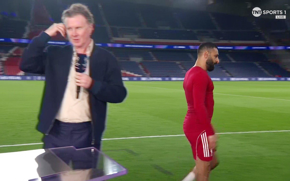 Salah từ chối trả lời phỏng vấn rồi đi vào đường hầm - Ảnh: TNT Sports