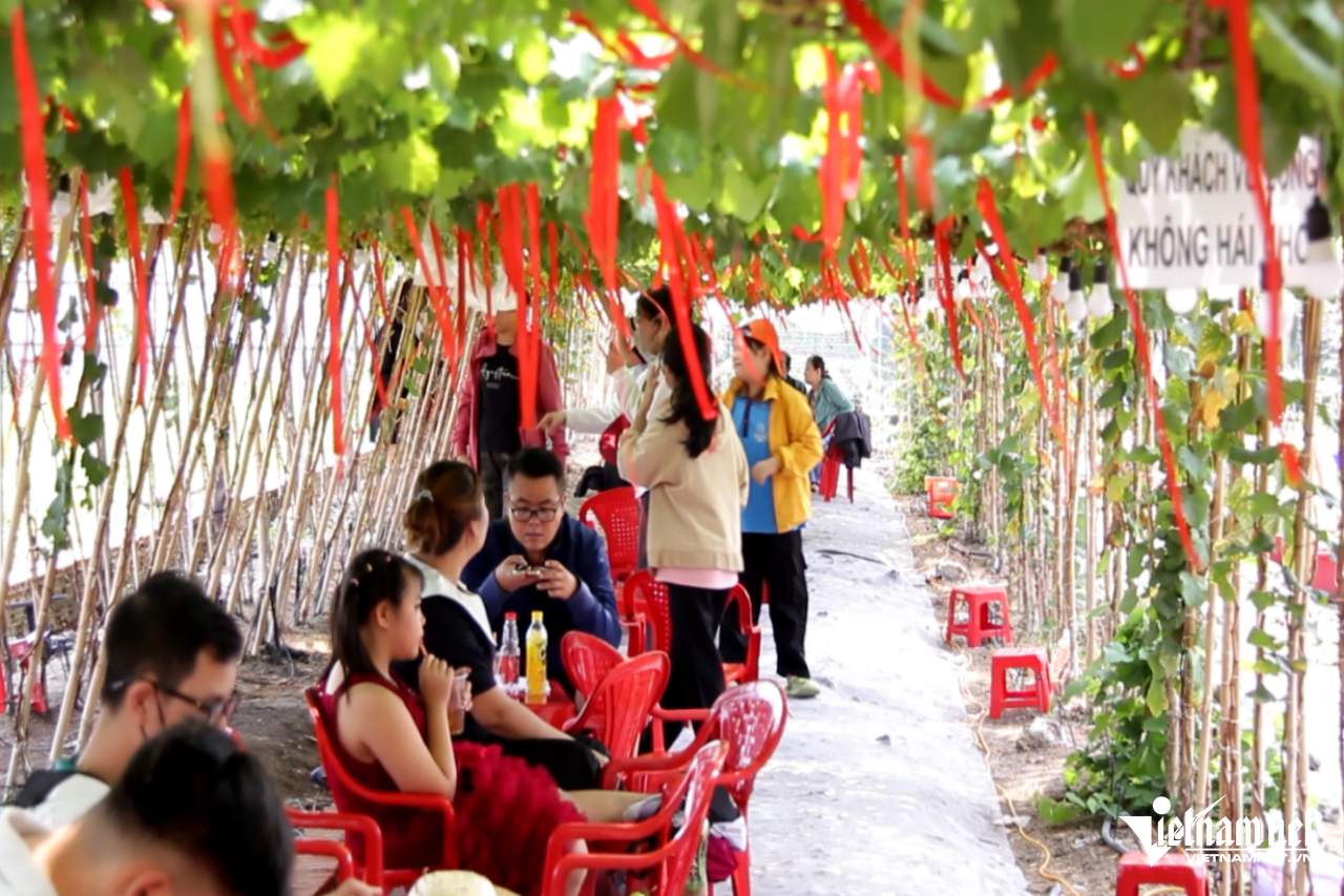 Video: Đông đảo khách đến trải nghiệm quán nước dưới vườn nho trĩu quả. Clip: Hà Nguyễn