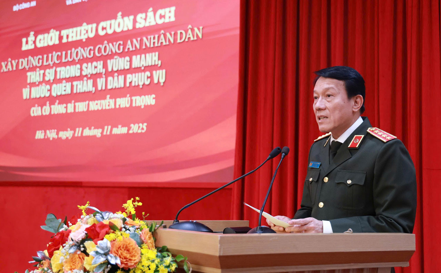 Phát biểu tại buổi lễ, Đại tướng Lương Tam Quang - Ủy viên Bộ Chính trị, Bí thư Đảng ủy Công an Trung ương, Bộ trưởng Bộ Công an khẳng định, sinh thời, Tổng Bí thư Nguyễn Phú Trọng luôn dành sự quan tâm đặc biệt đối với sự nghiệp bảo vệ an ninh quốc gia, trật tự an toàn xã hội và xây dựng lực lượng Công an nhân dân (CAND).