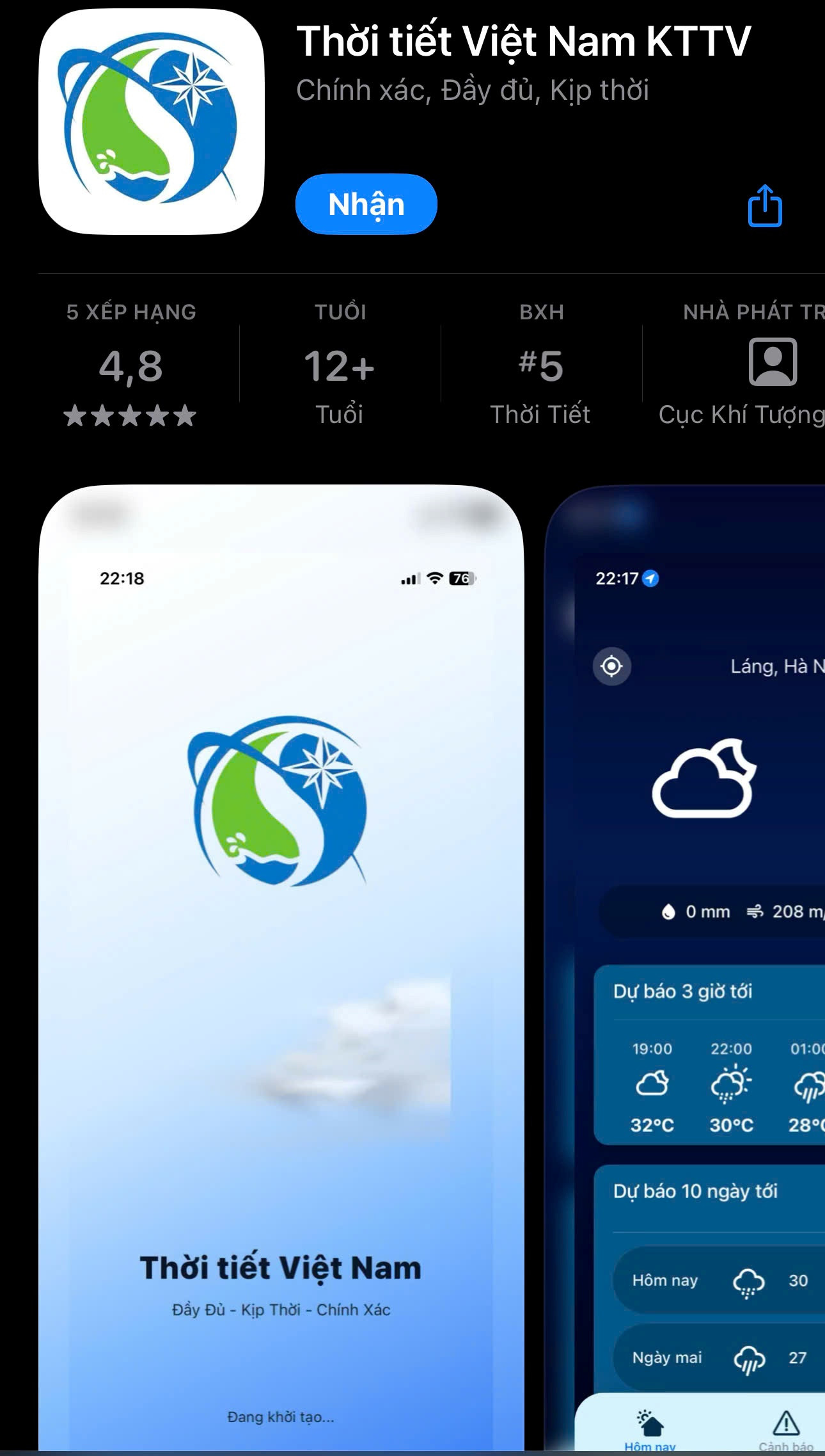 Thay vì chỉ dựa vào mô hình quốc tế, ứng dụng tích hợp dữ liệu bản địa chuyên sâu, cho phép cập nhật tình hình thời tiết tại vị trí người dùng với tần suất 10 phút/lần và cung cấp bản tin dự báo chi tiết lên đến 10 ngày.