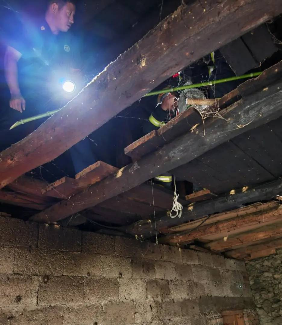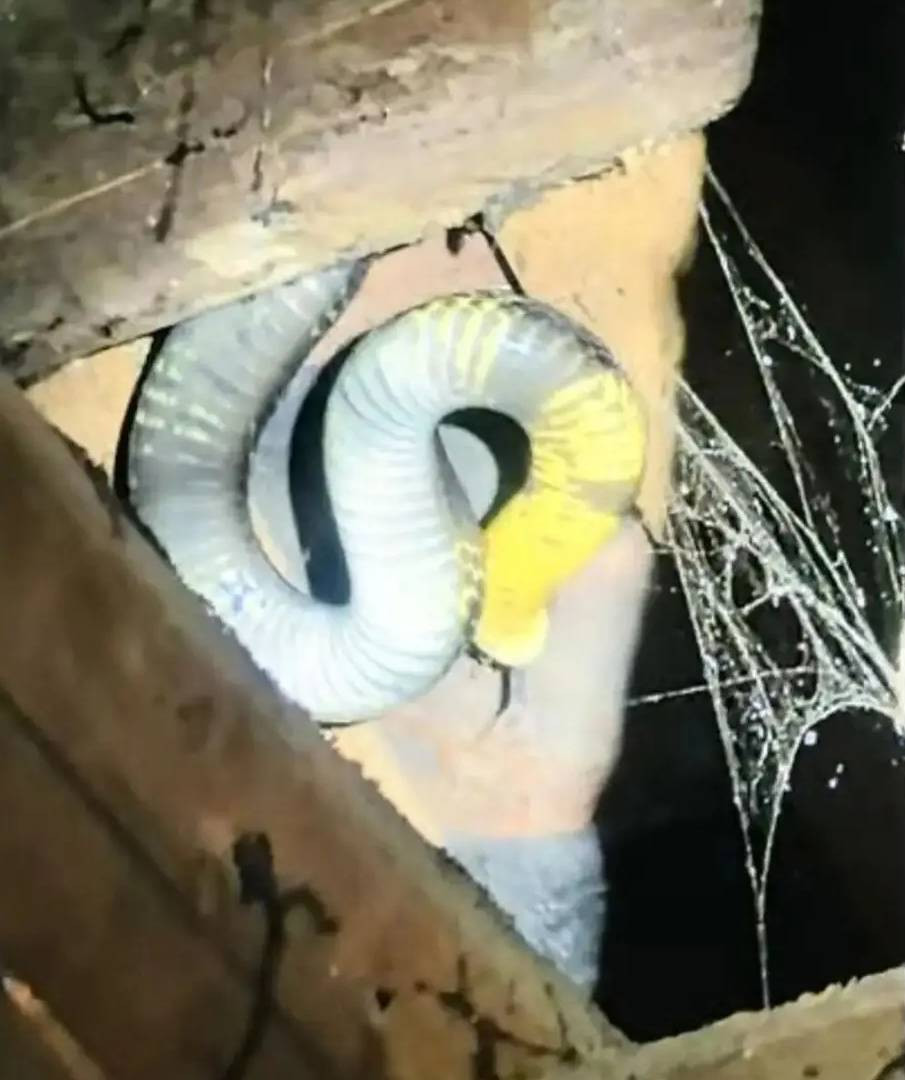 Sáng 12/9, ông Bành - người dân ở Lương Sơn (Tứ Xuyên) - hoảng hốt trình báo chính quyền khi phát hiện một con rắn lớn nằm vắt vẻo trên xà nhà suốt đêm.