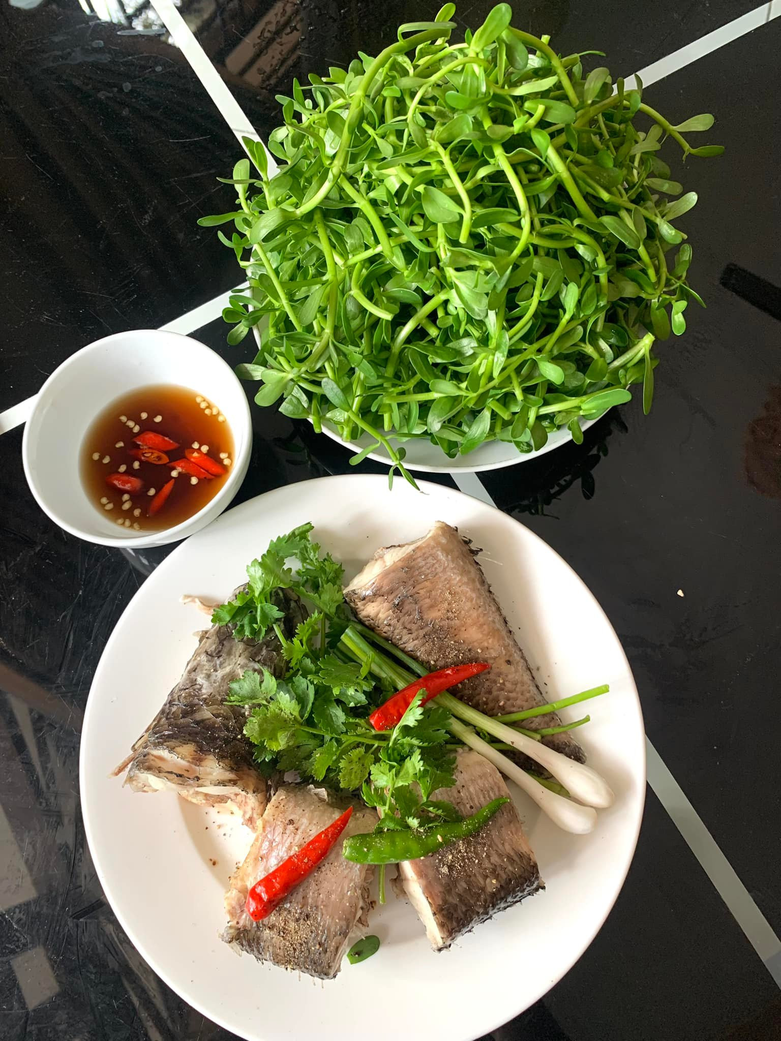 Món cháo cá ăn cùng rau đắng đất. Ảnh: Luyen Nguyen