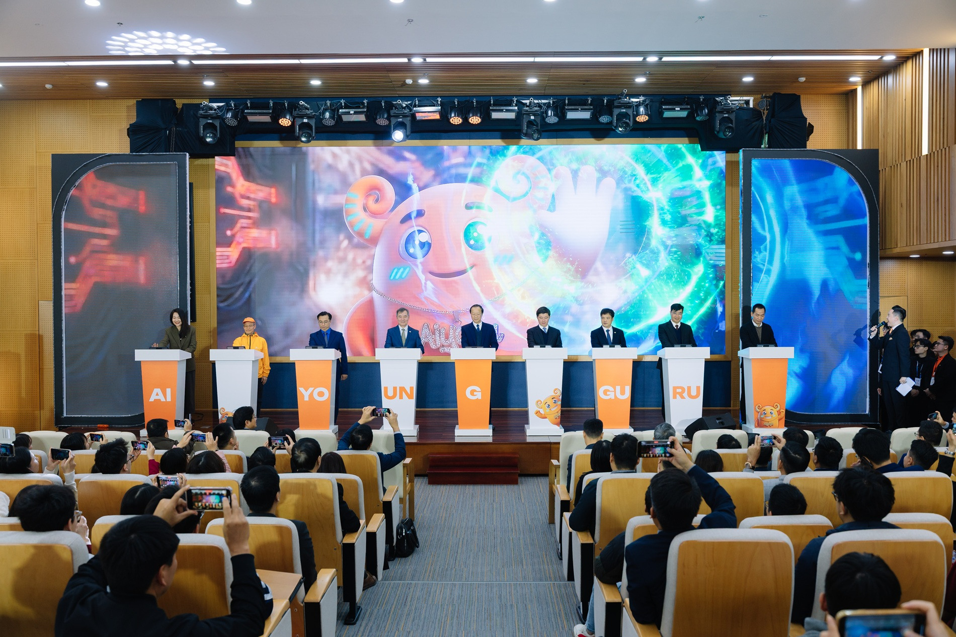 Các đại biểu thực hiện nghi thức phát động cuộc thi AI Young Guru. Ảnh: BTC
