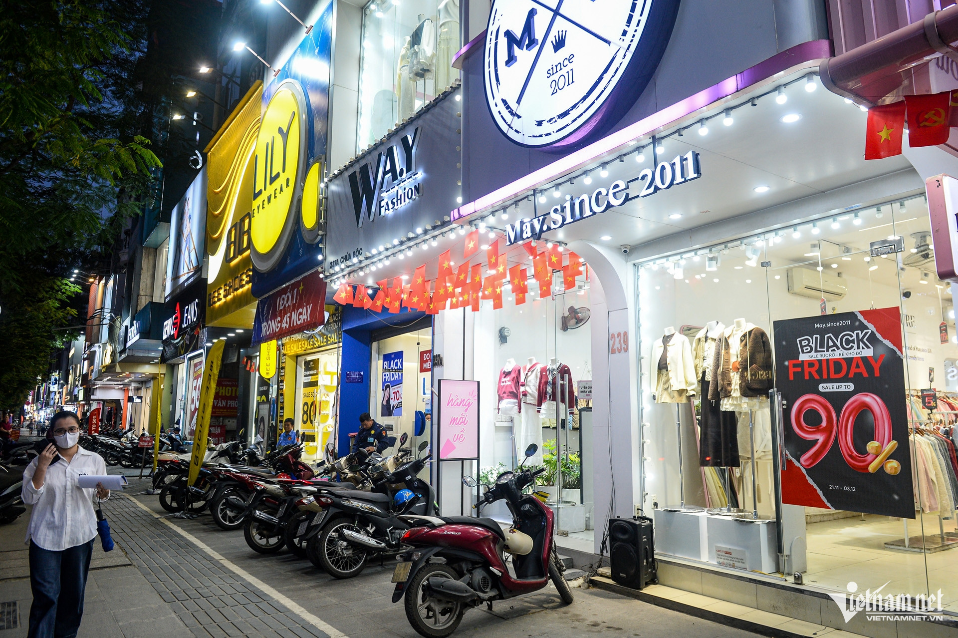 "Thánh địa thời trang" của giới trẻ là phố Chùa Bộc, nơi ngập tràn banner, phướn quảng cáo giảm giá nhân dịp Black Friday (thứ Sáu cuối cùng của tháng 11). Trong số này, có bảng giới thiệu giảm tới 90% nhưng không rõ thực tế mức giảm này có thực chất không.