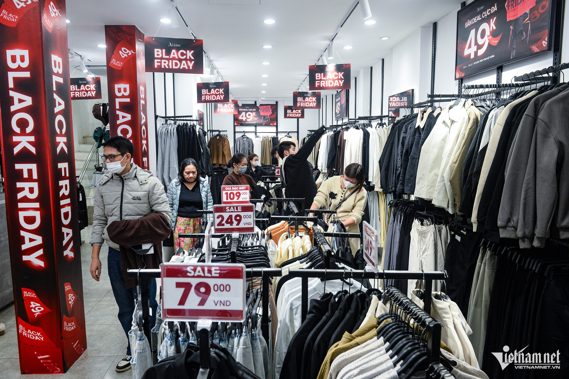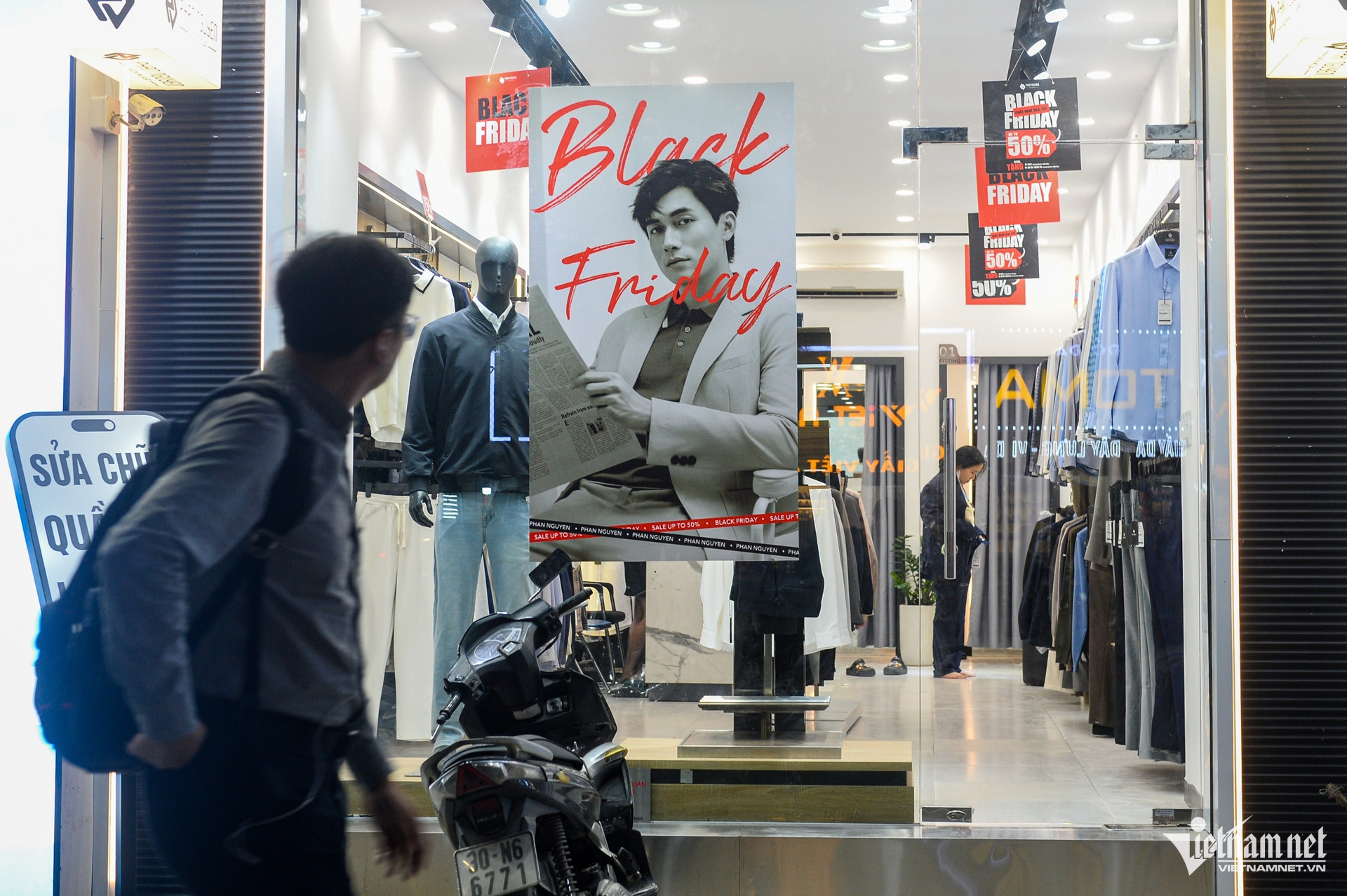Sát ngày Black Friday, nhiều cửa hàng kinh doanh thời trang trên các tuyến phố như Chùa Bộc, Phạm Ngọc Thạch, Cầu Giấy (Hà Nội) treo biển quảng cáo giảm giá, mức giảm từ 30-90% nhưng vẫn vắng khách.
