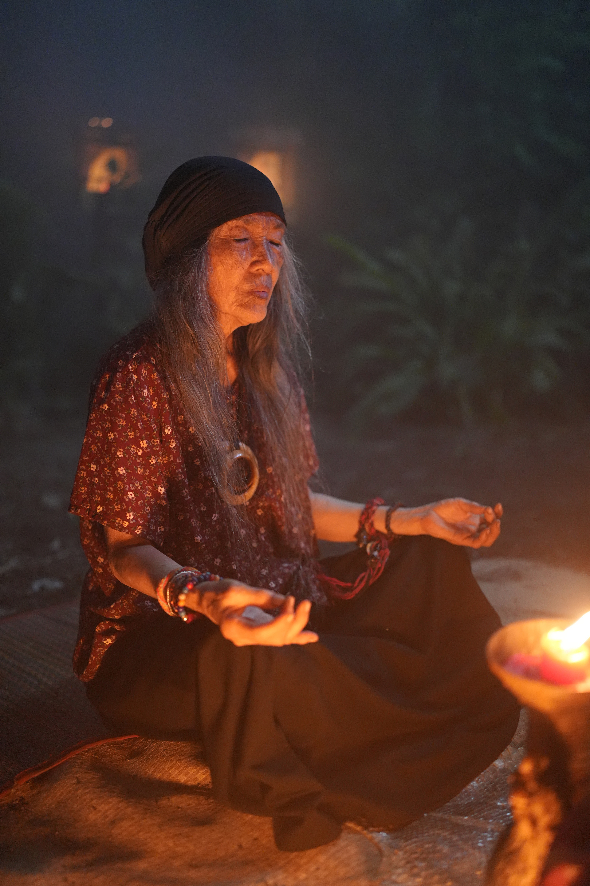 Tạo hình bà đồng của Thanh Hiền dân dã, huyền bí thay vì mặc lễ phục lộng lẫy. Ảnh: NSX