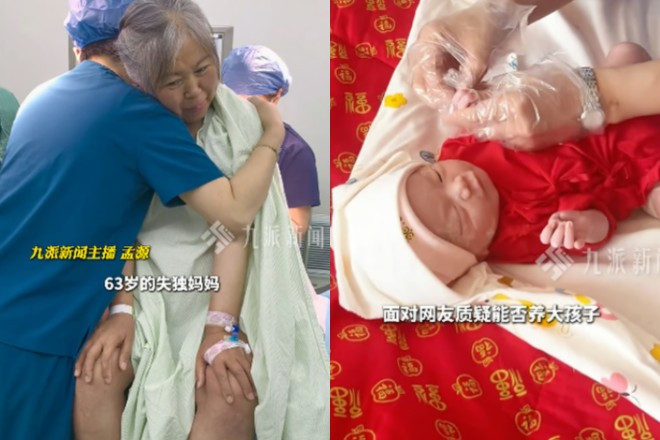 Người phụ nữ 63 tuổi đã sinh con tại một bệnh viện ở tỉnh Cát Lâm, sớm hơn khoảng 2 tuần so với ngày dự sinh. Cả mẹ và em bé đều khỏe mạnh. Bé gái nặng khoảng 2,8kg, trang SCMP đưa tin ngày 11/3.