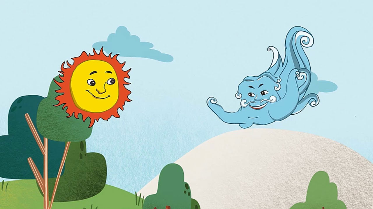 Gió trả lời, “Đồng ý!”. Và ngay lập tức Gió thổi ra một cơn gió lạnh buốt nhắm người khách bộ hành.