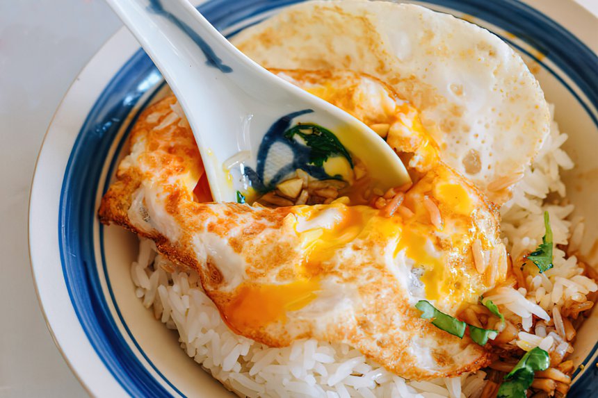 Lấy cảm hứng từ cơm trộn bibimbap của Hàn Quốc, tô cơm dưới đây là sự kết hợp mới lạ giữa trứng ốp la cùng xì dầu, dầu hào, tỏi...