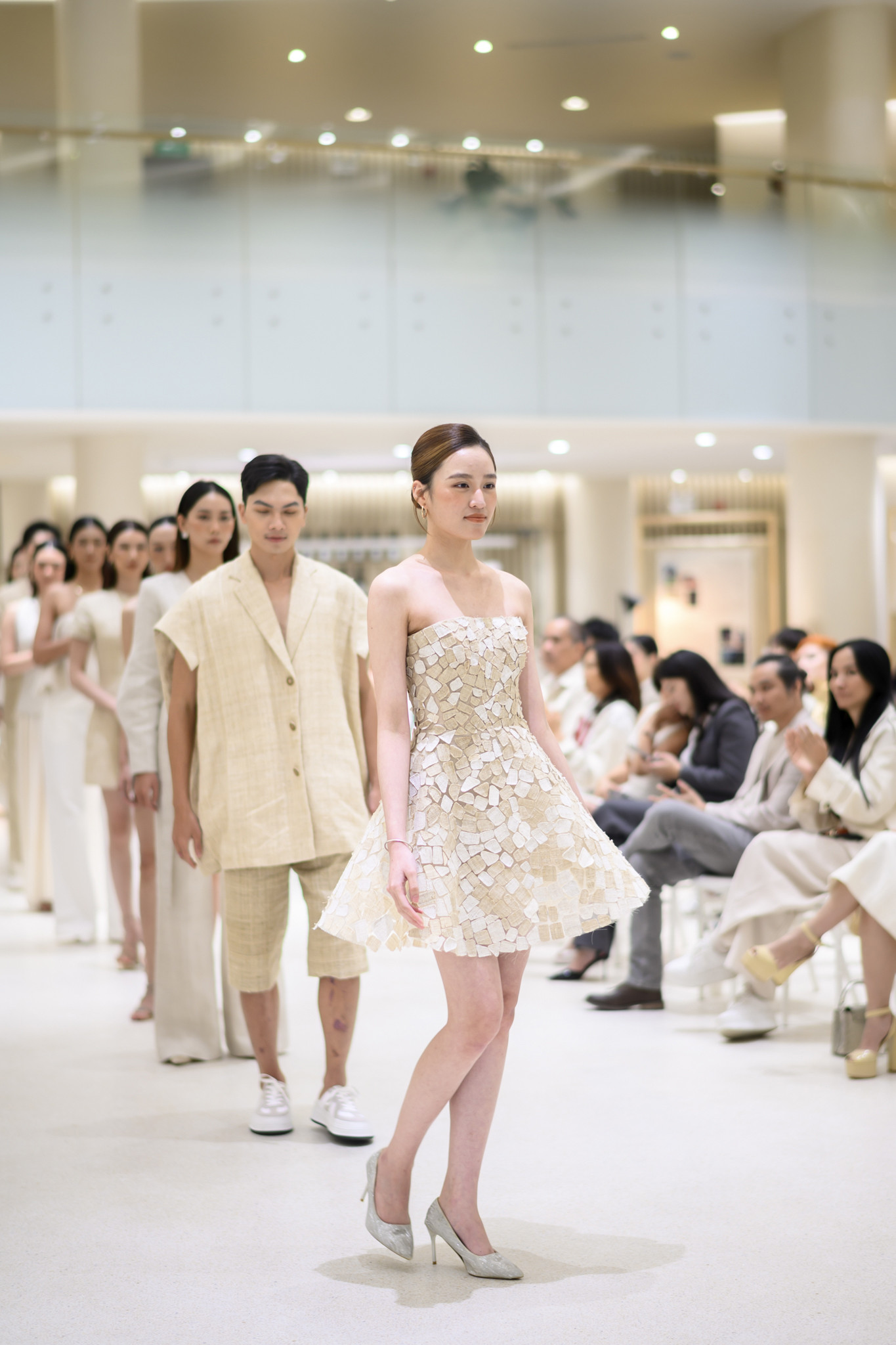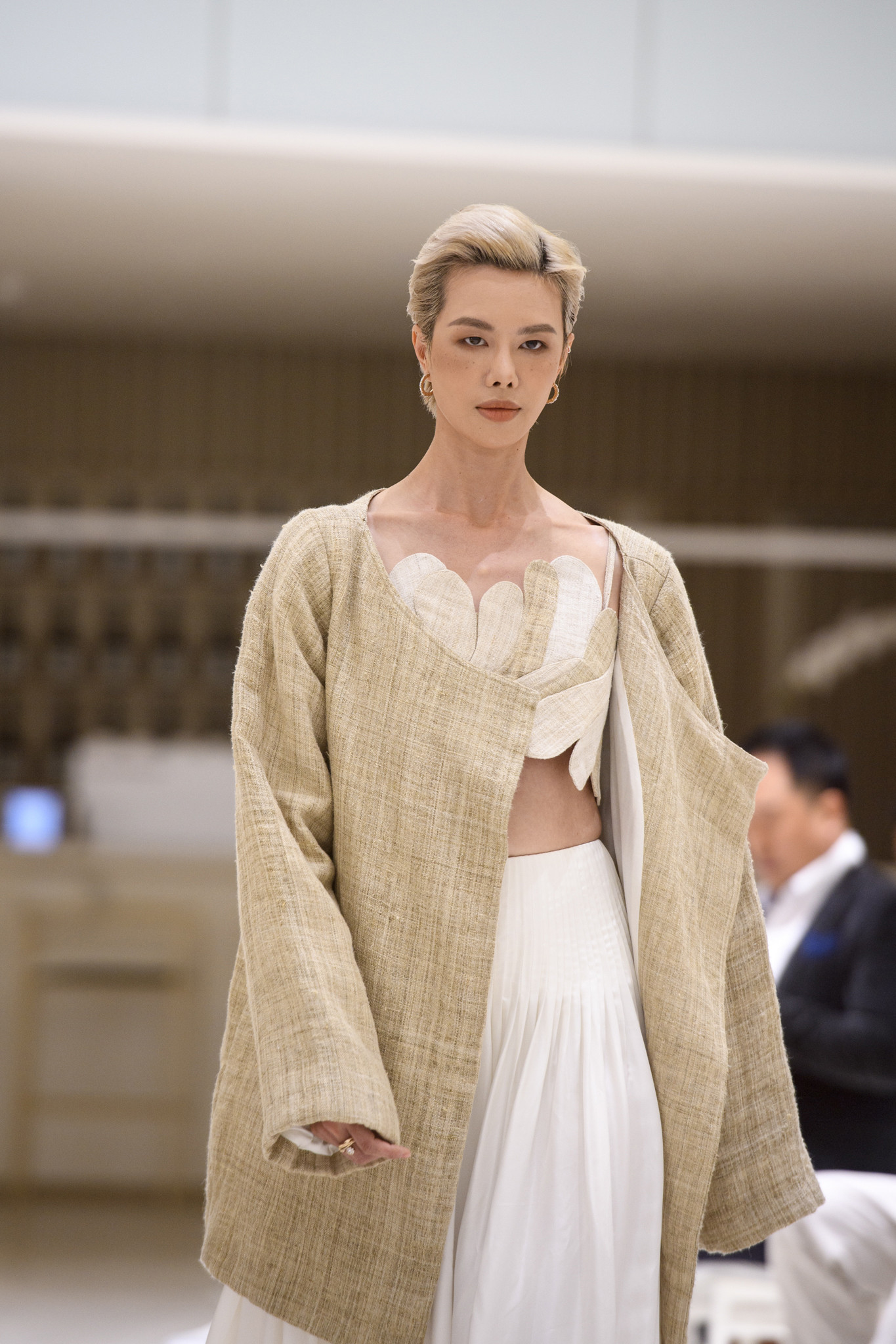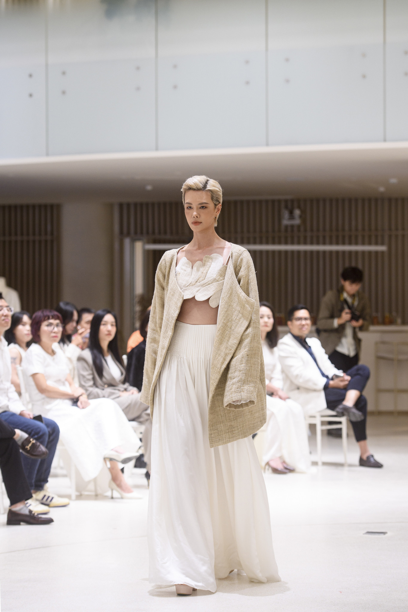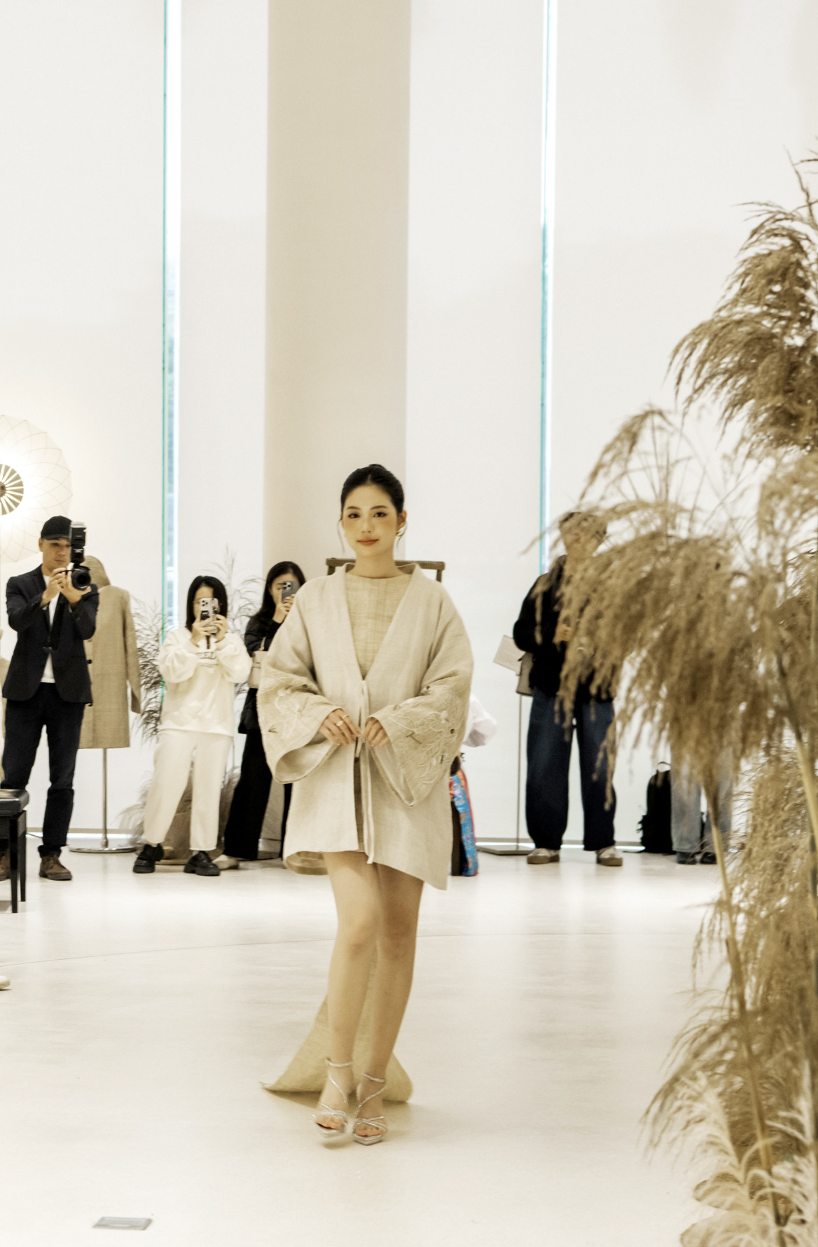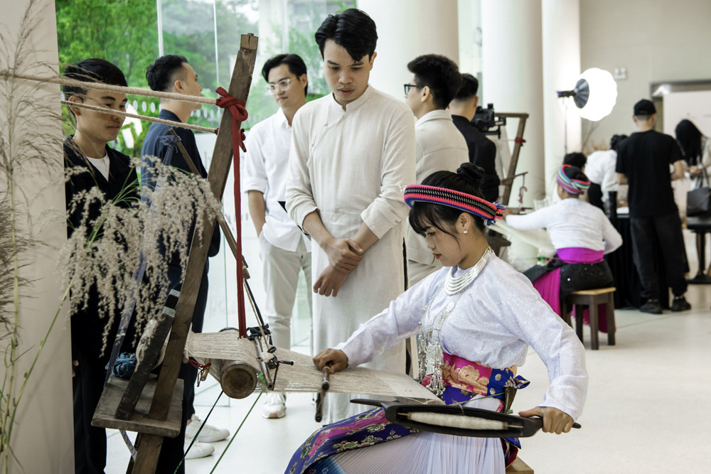 ‘Terrace Collection’ gồm 30 thiết kế được tạo nên từ vải gai dầu dệt tay của đồng bào H’Mông, kết hợp với lụa Mã Châu cổ truyền, thể hiện sự giao thoa tinh tế giữa thủ công bản địa và cảm quan đương đại.