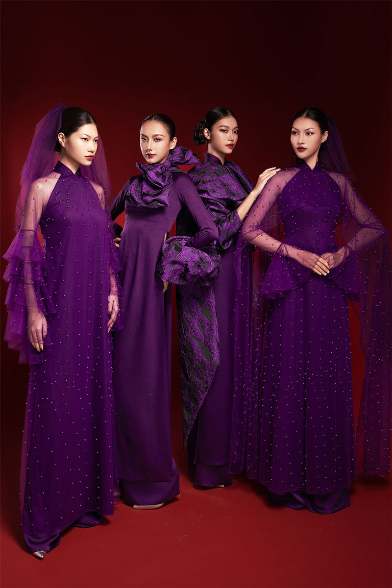 Trong những tà áo dài mang gam tím Huế trầm ấm, sang trọng, họ tái hiện vẻ đẹp vừa truyền thống, vừa hiện đại của mảnh đất cố đô - nơi thanh lịch, tao nhã và đậm đà bản sắc văn hóa Việt.