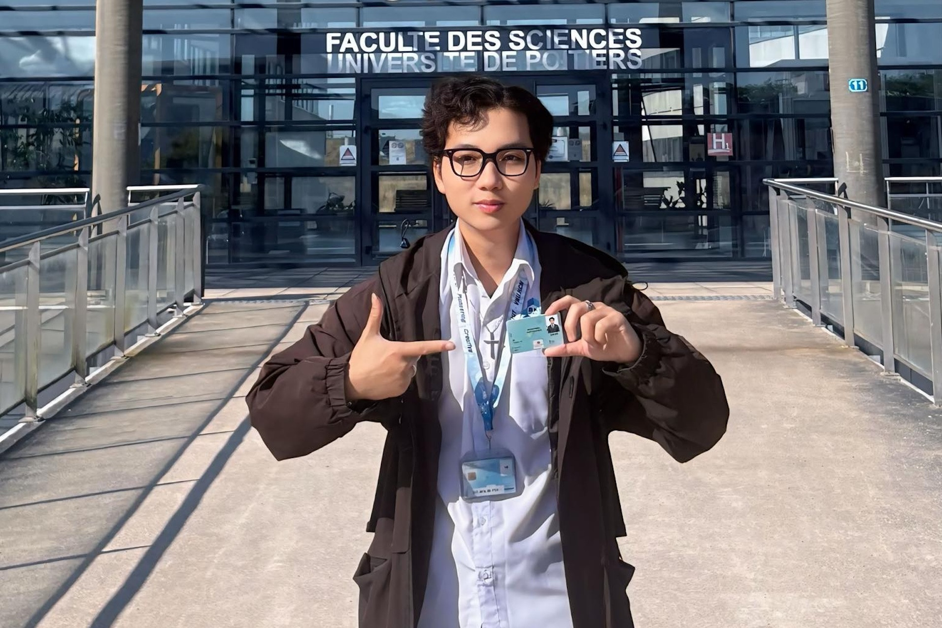 Lê Thanh Tài trong thời gian trao đổi luận văn tốt nghiệp tại Viện Pprime, Đại học Poitiers (3–10/2025). Ảnh: NVCC