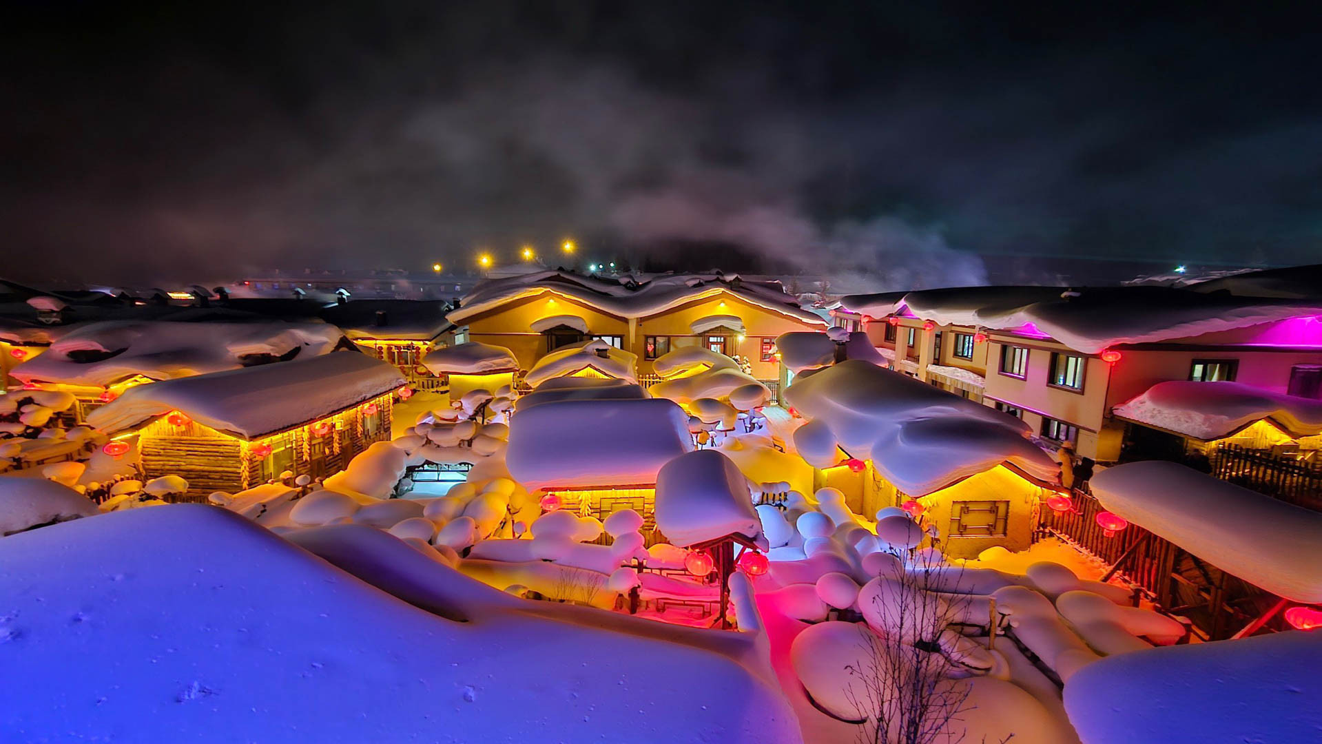 Khi đêm xuống, nơi đây càng trở nên huyền ảo khi được thắp sáng bởi những ngọn đèn lồng xanh đỏ, mang không khí đặc trưng lễ hội cuối năm và nét văn hóa của người dân sống ở khu vực Đông Bắc Trung Quốc.