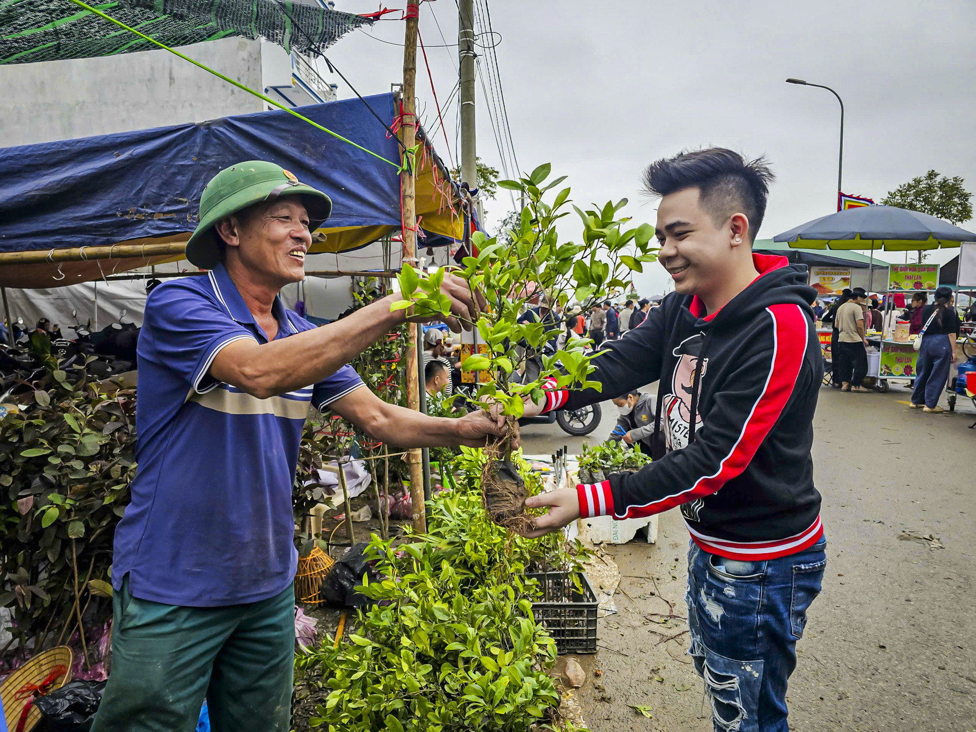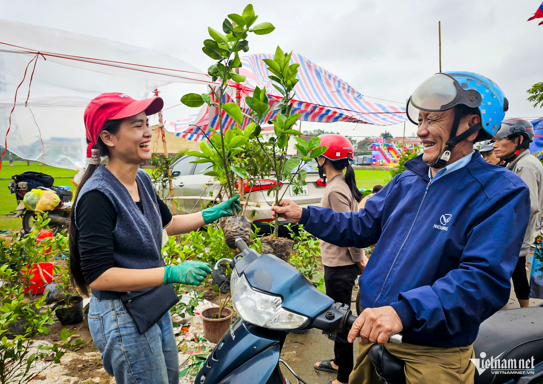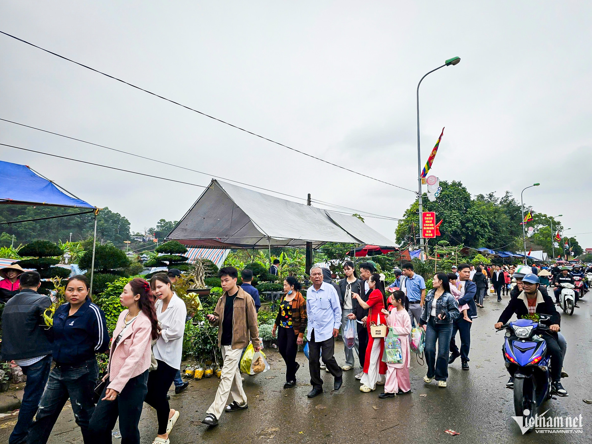 Tại chợ Viềng (Ninh Bình), các gian hàng cây giống, cây ăn quả, cây cảnh chiếm đa số và là mặt hàng bán chạy nhất. Người dân, du khách nô nức chọn mua cây với mong ước mộ...