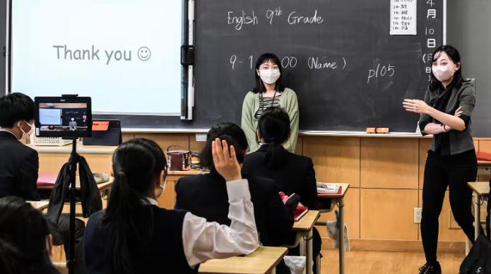 Lớp học tiếng Anh tại một trường THCS ở Tokyo, Nhật Bản. Ảnh: Nikkei Asia