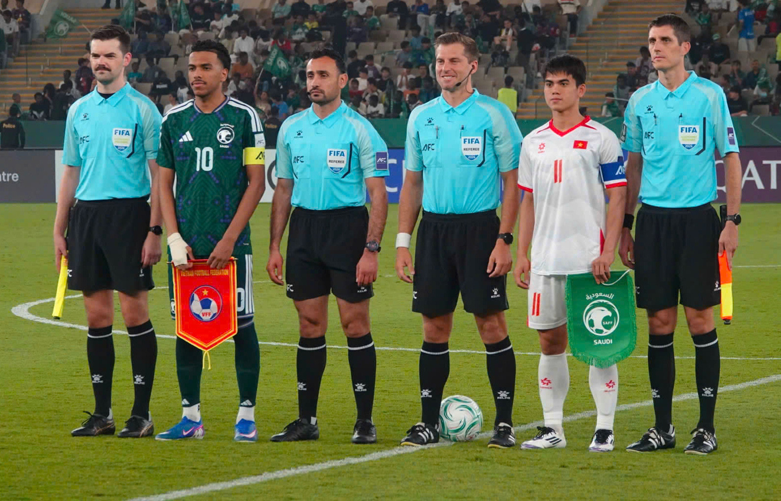Trọng tài Alexander George King (thứ 3 từ phải sang) từng mang tới vận may cho U23 Việt Nam ở trận thắng U23 Saudi Arabia 1-0. Ảnh: Ted Trần