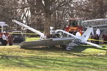 MỸ - Chiếc máy bay huấn luyện mất động cơ, đâm vào cây trong công viên nhưng may mắn không gây thiệt hại về người.