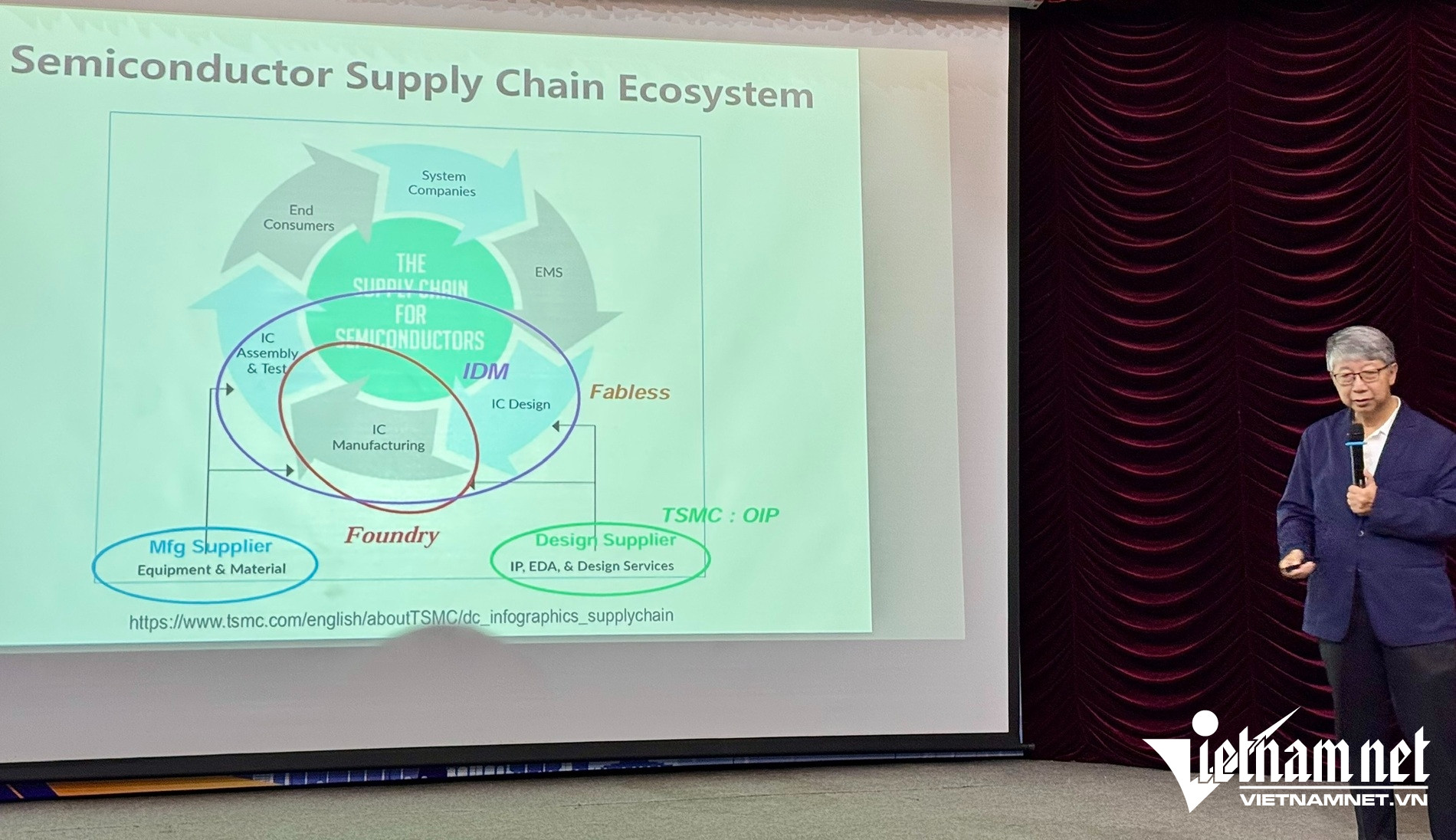 GS. Albert Yeu-Chung Lin, chuyên gia về Semiconductor Intelligence, Đại học Quốc lập Dương Minh Giao Thông trình bày Chiến lược phát triển nguồn nhân lực cho ngành công nghiệp bán dẫn. Ảnh: Du Lam