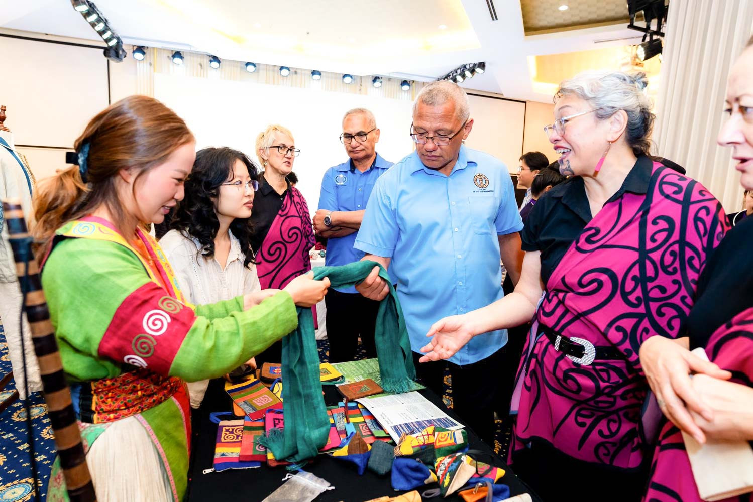 Sản phẩm từ vải lanh của đồng bào dân tộc Mông được giới thiệu với du khách quốc tế nhân kỷ niệm 50 năm thiết lập quan hệ ngoại giao Việt Nam - New Zealand (1975 - 2025). Ảnh: NVCC