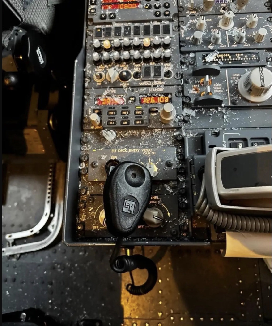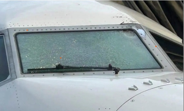 Máy bay bị vỡ kính chắn gió sau khi va chạm với vật thể bí ẩn. Ảnh: X