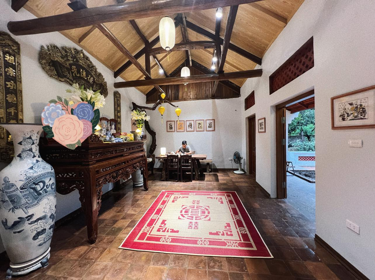 “Khi bắt tay vào cải tạo, vợ chồng mình phải tháo dỡ mái, giữ lại phần cột kèo chính không bị hư hỏng, có khắc hoa văn và số năm xây nhà rồi tự tay hàn lại khung mái bằng sắt cho chắc chắn, sau đó lợp ngói mới.