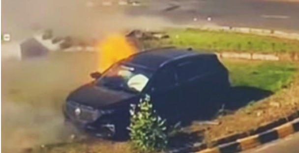 Chỉ vài giây sau khi dừng, ngọn lửa bùng lên từ gầm xe. Nguyên nhân ban đầu được cho là đường dẫn nhiên liệu phía trước bị vỡ, khiến xăng bén lửa ngay lập tức. Trong hình ảnh có thể thấy cả bốn cửa xe bật mở, các hành khách hoảng hốt thoát ra ngoài.