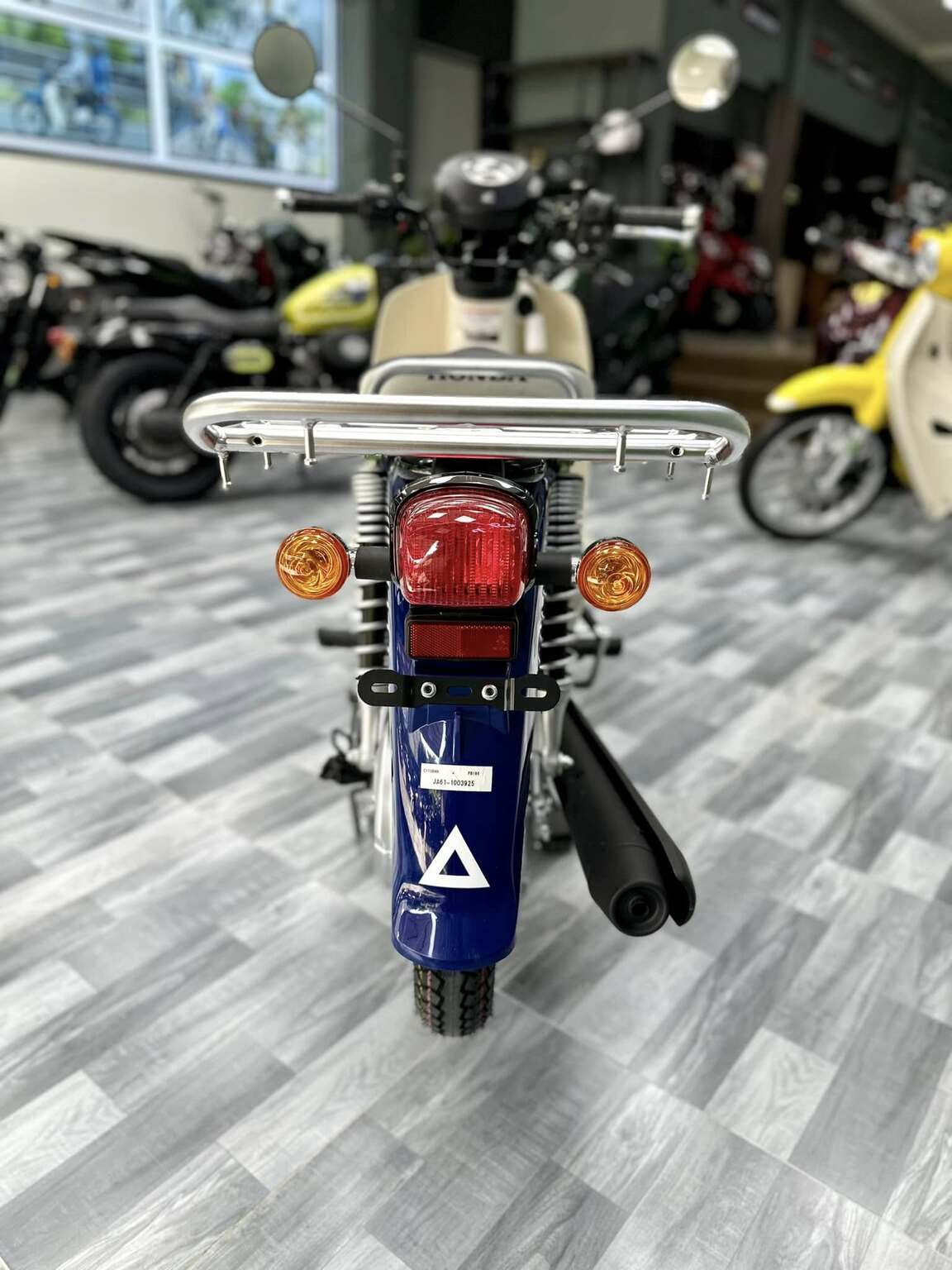 Phía sau là baga bản rộng, khung xe lộ rõ và hệ thống treo gia cố, tạo cảm giác thực dụng hơn là thời trang. Ảnh: Cub shop.