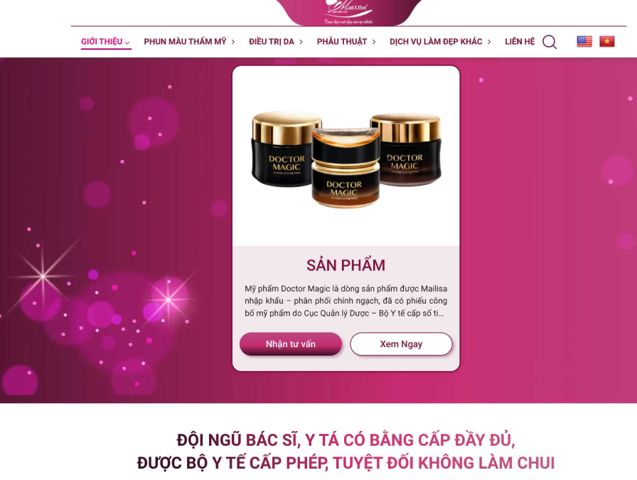 Sản phẩm của MK Skincare trên website của doanh nghiệp. Ảnh chụp màn hình.