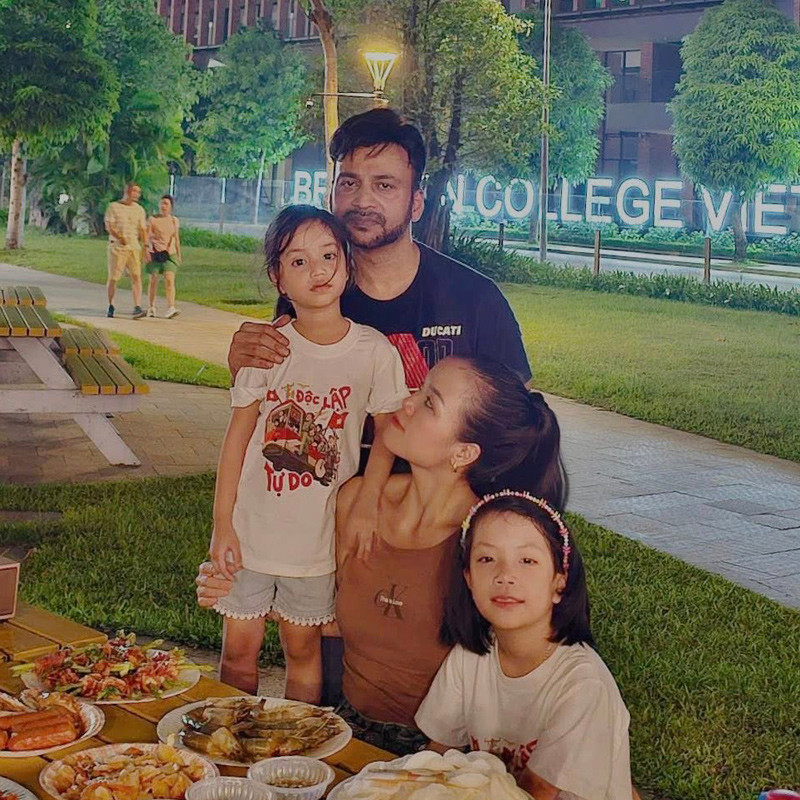Chị Trang cho biết, Rajneesh là người đàn ông của gia đình, yêu thương và chăm sóc con một cách tỉ mỉ. Anh quán triệt với vợ, không được nhắc đến chuyện con chung, con riêng. Với anh, cả 2 cô con gái đều là máu mủ và là cả cuộc sống.